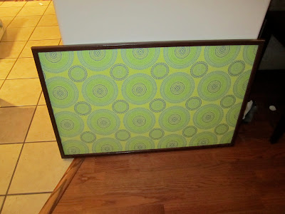 We had an old cork board and I wanted to make it cute for the baby room. I got some fabric on sale at Hobby Lobby, and some spray paint and went to work. It was pretty easy all you have to do is pull out the staples holding the cork to the frame. Then I spray painted the frame very slowly to make sure it was even. It took a few coats but I avoided dripping and uneven spots. Then I just used hot glue to attach the fabric, and then reattach it to the frame.
